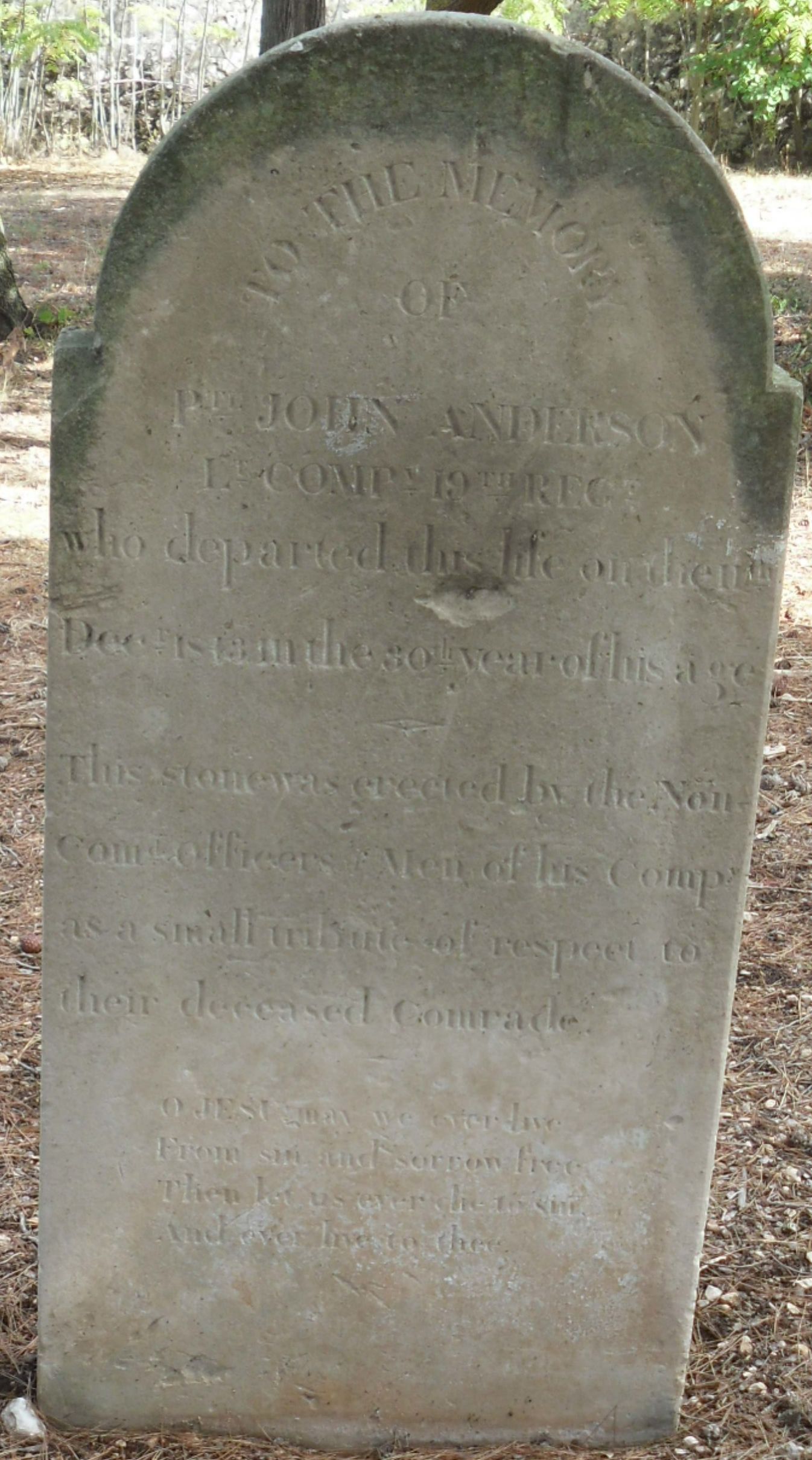 Sacred To The Memory of John Anderson Lt Compy, 19th Regt who departed this life on 11th Decr 1843 in the 30th Year of his age